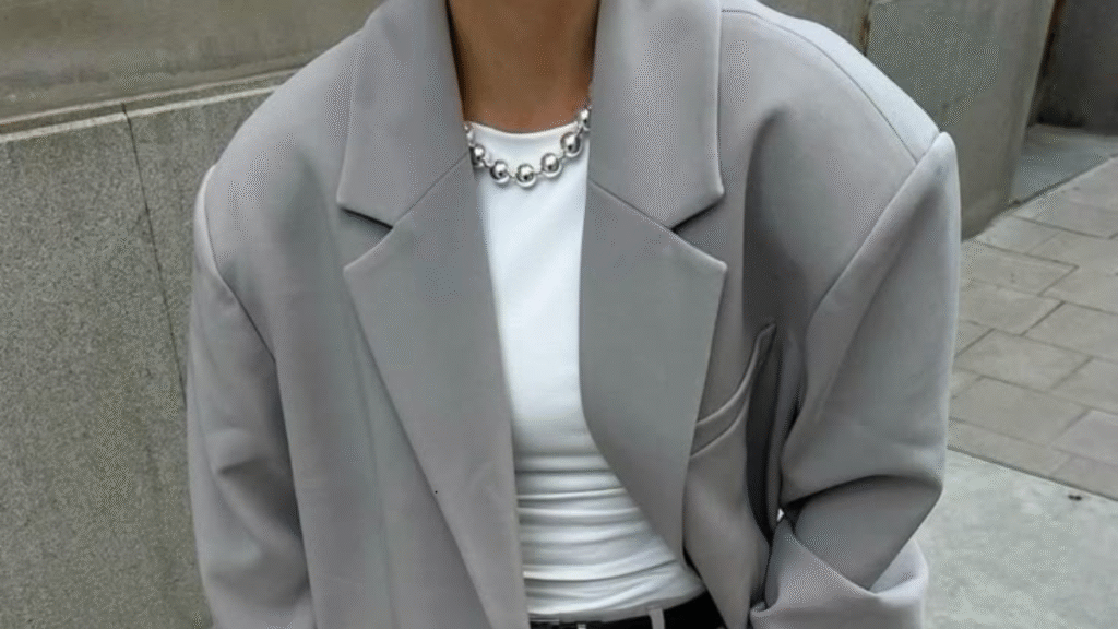 No dia a dia, ele traduz a estética do quiet luxury: discreto, mas imponente. Um simples blazer cinza, usado com jeans escuro e camisa branca, comunica maturidade e bom gosto sem esforço. É a peça que equilibra o look e confere imediatamente aquele ar de mulher que sabe o que faz.