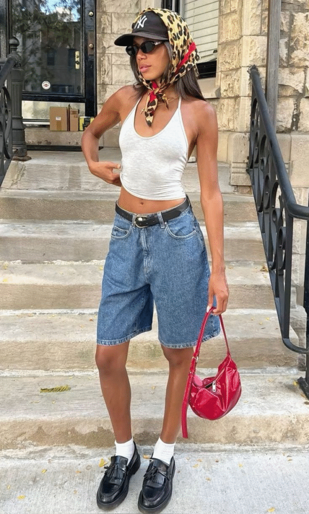 Os mais ousados podem apostar em estampas e combinações diferentes, como boné com lenço amarrado por baixo, ou óculos pequenos estilo anos 2000. Essa mistura cria um resultado moderno e super estiloso, perfeito para quem ama brincar com moda.