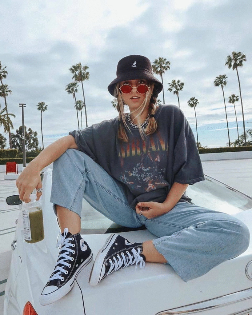 O bucket hat pode substituir o boné em algumas produções, mantendo a essência descolada. Combine com óculos redondos ou vintage para um ar nostálgico que está em alta no street style.