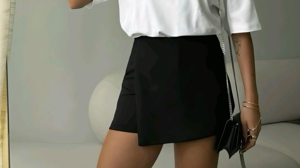 No verão, a saia preta é sinônimo de leveza urbana. Combinada a regatas de algodão, camisas oversized ou blusas de seda, ela cria um visual despretensiosamente elegante. Sandálias finas, mules ou tênis minimalistas completam o look com frescor e autenticidade.